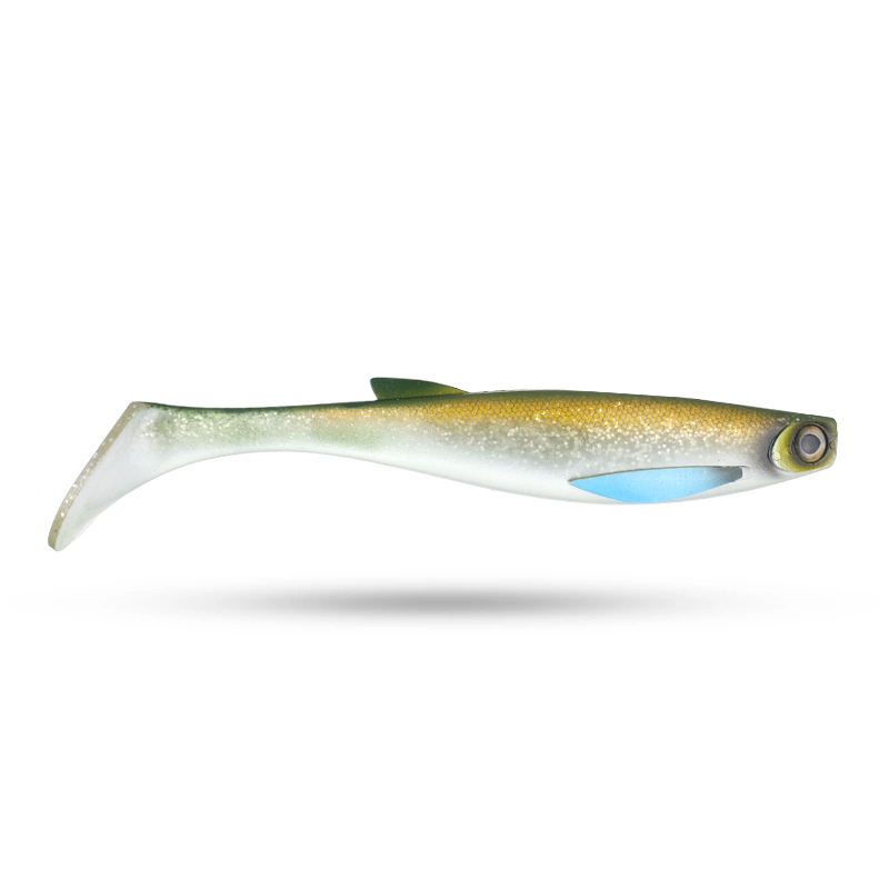 En shad softbait i en boxform, der flytter meget vand takket være dens overdimensionerede pagaj. Som for alle vores egne skræddersyede bløde lokker, så er disse lokker fri for phthalat!