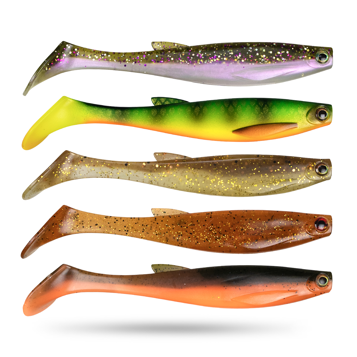 Vores succesfulde Scout Shad i en 9 cm lang version, utrolig effektiv på aborre og sandart. Med sin store pagaj bevæger den sig super godt med en flot "Belly roll".