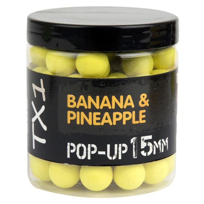 Shimano TX1 Banana & Pineapple Pop-up - TX1 Pop-ups er det perfekte agn at bruge med TX1 Boilies, hvis du ønsker et opskubbet eller kritisk balanceret agn.