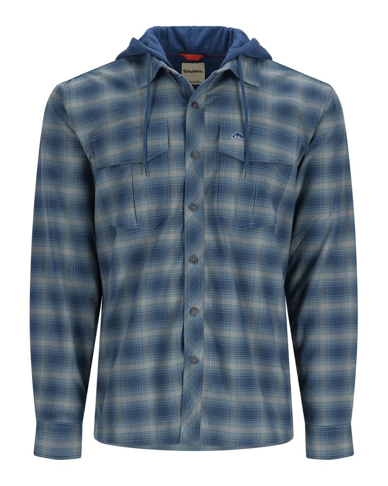 Simms Coldweather Hoody Neptune MC Plaid er en flannelhættejakke foret med waffle fleece, perfekt til kolde fiskedage.