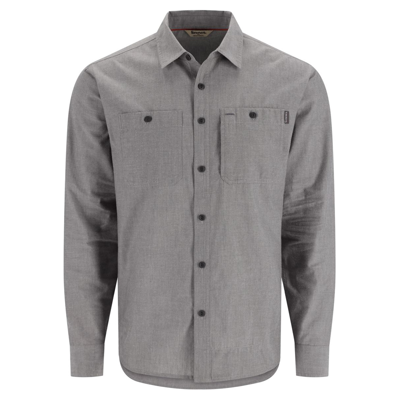 - The lightweight cotton polyester blend provides the cool airy feel of cotton and wicking performance of polyester - Classic point collar for a crisp look and casual feel, center back locker loop and button-front closure. Finished with shirttail hem, self-fabric side seam gusset and convenient sunglasses chamois. - Chest pockets constructed with drop-in button closure. Left chest pocket has a bonus hidden zippered pocket and sunglass/pen slot with bartack reinforcements. - Back yoke extends over shoulders for enhanced stretch and mobility, finished with triple-needle topstitch for durability - Set in sleeves with placketed button cuff closure