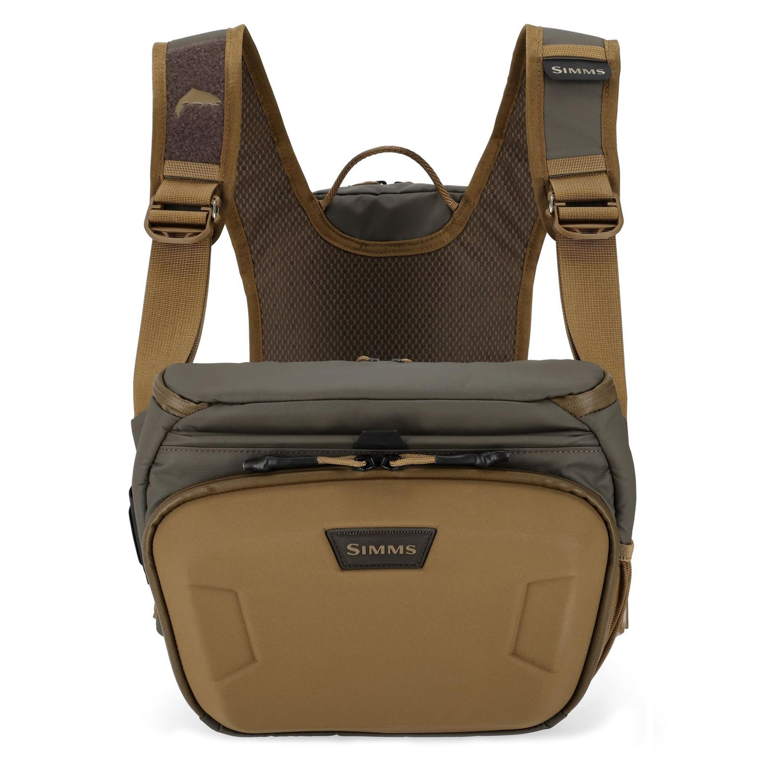 Bagpanelet har plads til et hydreringssystem og ekstra tøjlag, mens fronttasken har et hovedrum med skillevæg, magnetlomme og fluelap for nemt skift af fluer. Kan nemt fastgøres til Simms waders eller Headwaters Rygsæk.