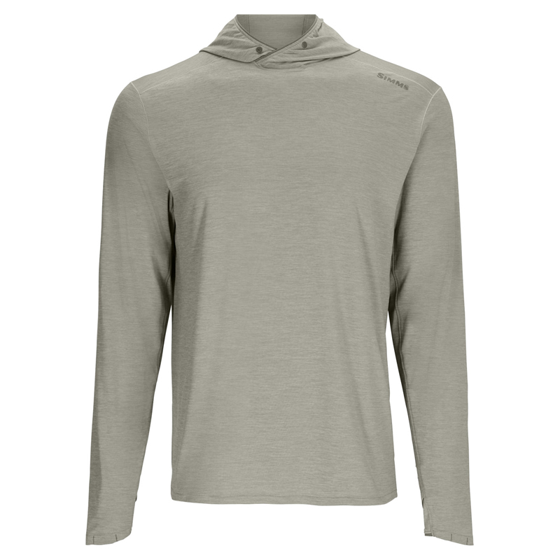 Simms SolarFlex Cooling Hoody Cinder - SolarFlex® Cooling Hoody er højteknologisk komfort til højintensiv varme og klarer klæbrige fiskescenarier med stretchmobilitet, UPF50-beskyttelse og en konstruktion, der er let at ånde og kølig at røre ved.