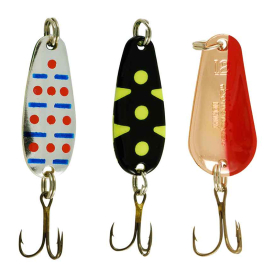 Dette klassiske sluksæt samler tre gennemtestede favoritter til fiskeri efter både ørred, røding og aborre. Spesial Classic 7 g i rød/kobber er et sikkert valg i søer og elve, især når fiskene står lidt dybere eller er svære at få i gang. Aura Classic 7 g har en hurtig, livlig gang i vandet, som ofte udløser hug fra fisk, der kun følger efter andre sluk.
