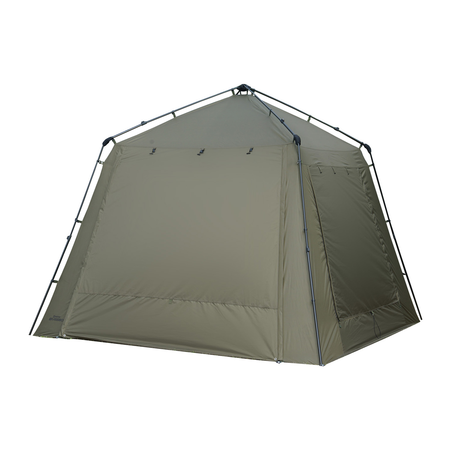 Dugen er lavet i 210D PU-backet polyester med 8.000 mm vandsøjletryk, som holder regn og vind ude, mens du fisker målrettet efter karper, suder eller andre fredfisk. Med det medfølgende stangsæt kan du lave et udvidet front-porch, så du får ekstra overdækning til stol, bord og grej.