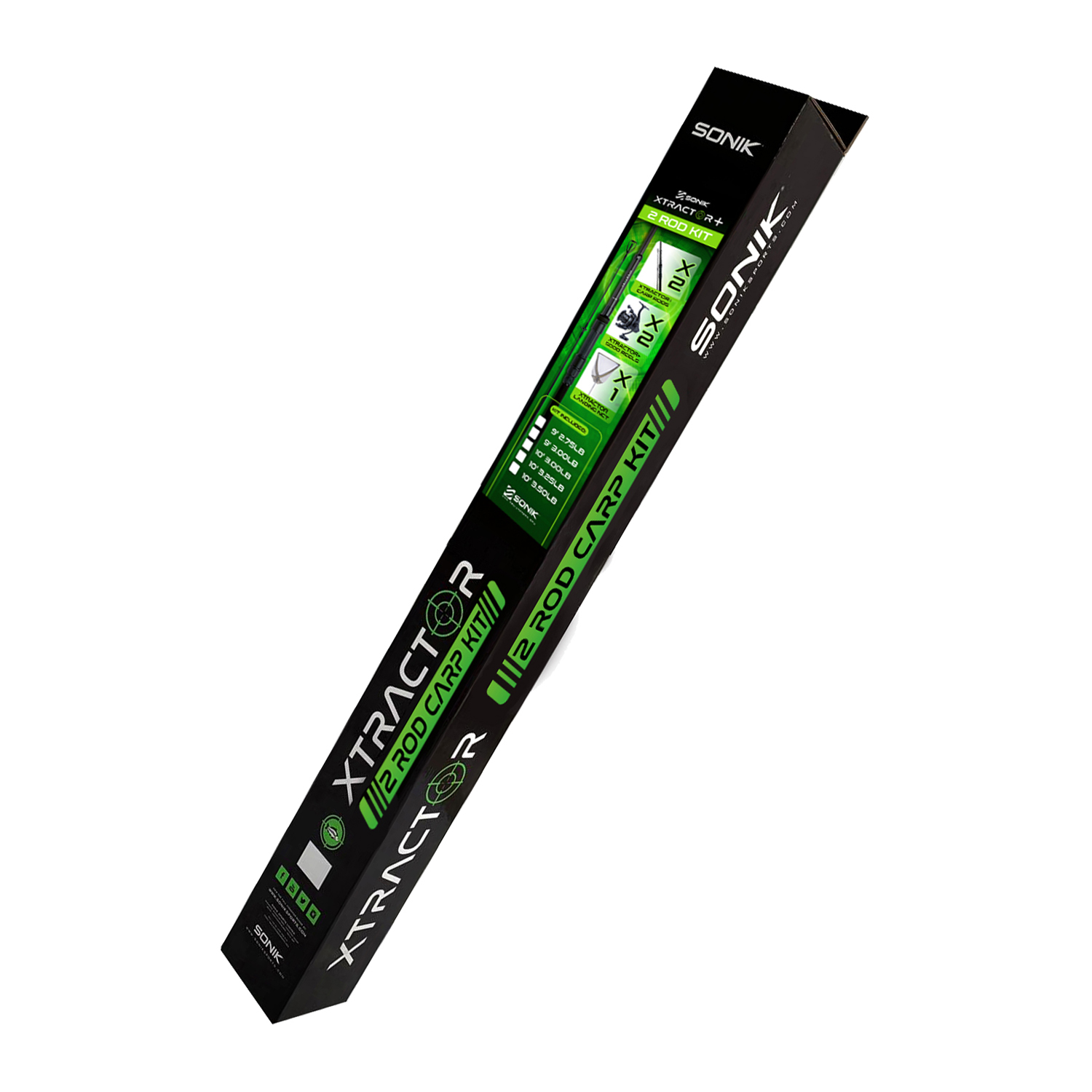 Dette kompakte karpesæt er ideelt til mobilt karpefiskeri. Pakken indeholder to Xtractor+ karpestænger, to Xtractor+ hjul samt en 42” håv.
