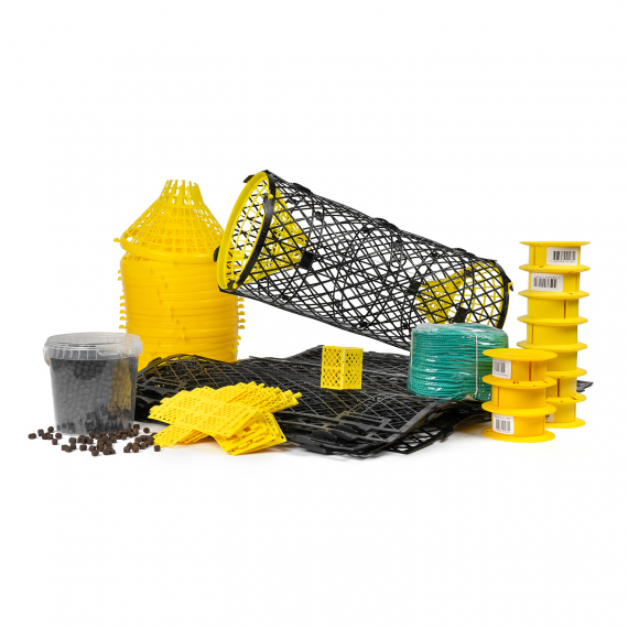 Trappy krebsefælden 10-packTrappy krebsefælden er aftagelig og fylder meget lidt under opbevaring og transport. Hvis du bruger Trappy Bait Boxes og Trappy Crayfish Bait, kan du spare meget tid i forhold til traditionelle redskaber. Der medfølger en agnboks til hver krebseklo.