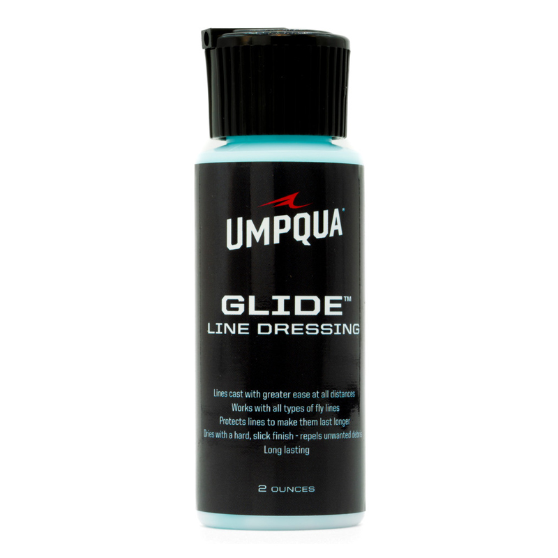 Glide Line Dressing hjælper dig med at skyde fluelinen længere og lettere. Glide kan bruges på alle typer flueliner og beskytter linjerne, så de præsterer bedre og holder længere. Indeholder også Umpqua Line Dressing Box med fire udskiftelige filtpuder. Påfør væsken på filten, træk fluelinen gennem rillerne, luk låget, og træk linen igennem. Fås som kun dressing, dressing og boks eller kun boks.