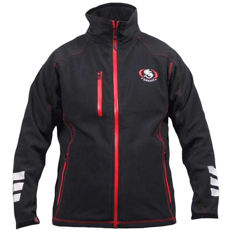 Ursuit Jacket Tech Wear er en pæn, sort softshell-jakke med et vindtæt og vandafvisende materiale med et Ursuit-logo på ryggen for at symbolisere ægte Ursuit-kvalitet!