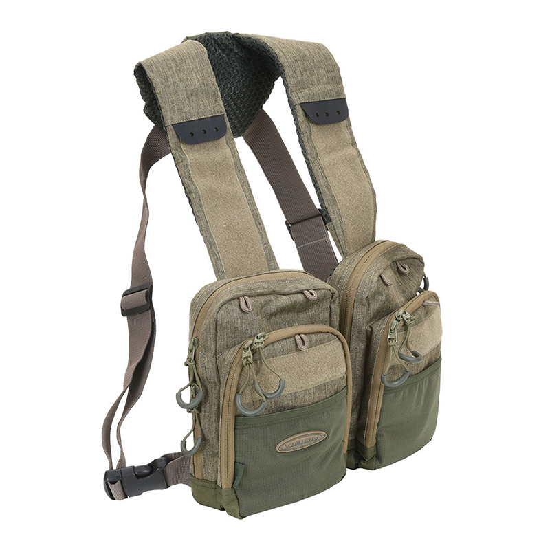 Dette komfortable og rummelige bæresystem er bygget op omkring to separate Mini Bras, som giver dig nem adgang til dit vigtigste grej under fisketuren. De to frontlommer kan låses sammen enten med lynlås eller elastisk rem, så du selv vælger, hvor tæt det skal sidde på kroppen.