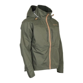 Koski Jacket Green bygger videre på den velkendte pasform fra Pupa-jakkerne, så du får en jakke, der sidder rigtigt, når du står ved vandet en hel dag. Jakken er syet i en robust 4-lags metervare, som også bruges i Vene-serien, og er udviklet til at tåle hårdt brug i skiftende vejr.