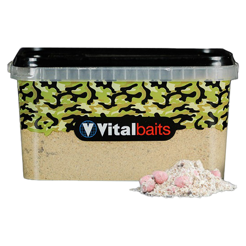 Vital Baits Groundbait Strawberry Nutty Bucket 3 kg - Du vil opdage, at denne agn har en fin struktur og indeholder tigernødder og partikler blandet med 10 mm opløselige Strawberry Nutty boilies. Til brug i din spod-mix og PVA-poser giver den en smuk mælkesky i vandet.