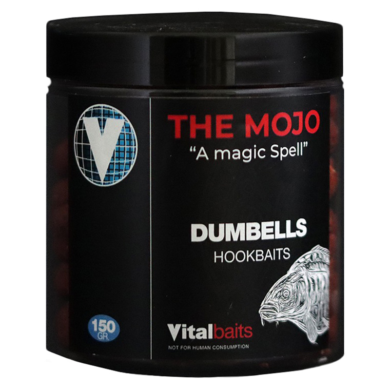 Vital Baits The Mojo Dumbells 10mm 150 g - Vi har brugt den originale The Mojo boilie-blanding og bare gjort dem lidt hårdere, så de bliver siddende længere på håret. De er blevet tilsat flere attraktorer/smagsstoffer.