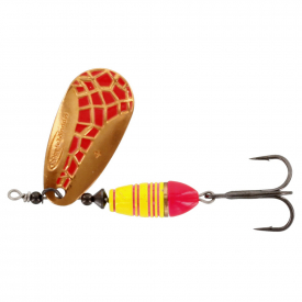 Det smukt designede messingblad vil reflektere lys fra forskellige vinkler. Den roterer ved den mindste berøring af hjulhåndtaget og starter de bevægelsesimpulser, som ingen ørred, laks eller andet rovdyr kan modstå. Dette er simpelthen den flotteste og mest attraktive spinner derude, og de stærke kroge i japansk stil vil klare testen af selv de hårdeste kampfisk.