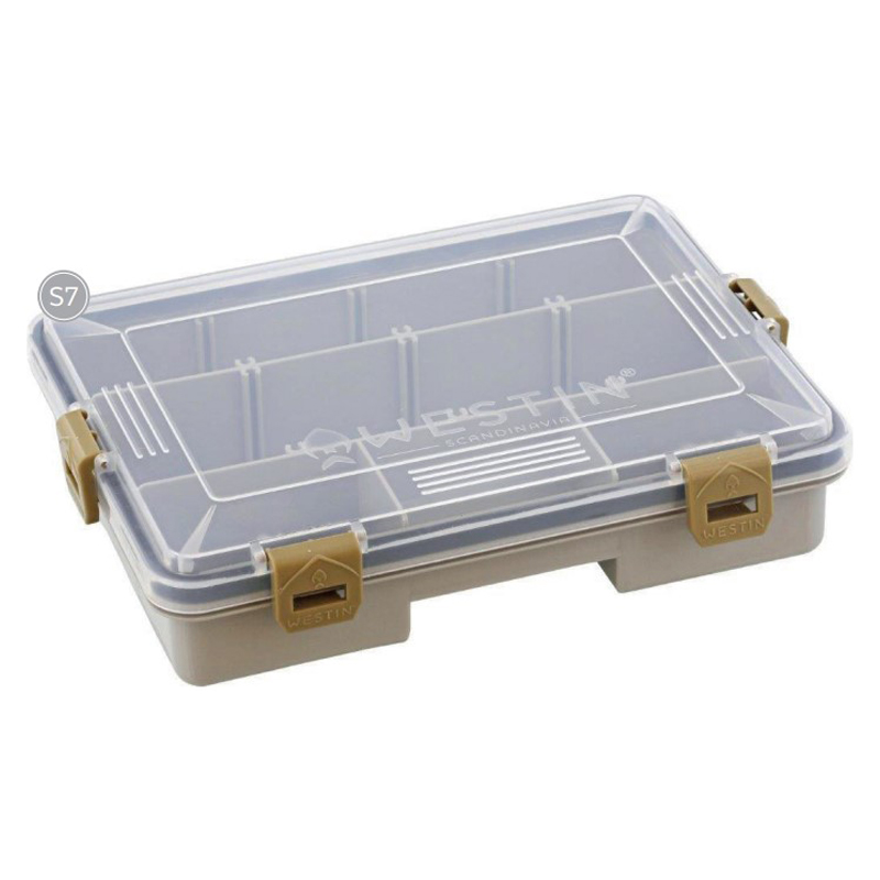 Westin W3 Waterproof Tackle Box S7 - Westins vandtætte grejboks W3 er løsningen til tør opbevaring af dit fiskegrej på båden eller i nærheden af vandet. Denne boks er en S7-model med tre faste rum i den forreste tredjedel og to faste rum i fuld længde med seks rumdelere.